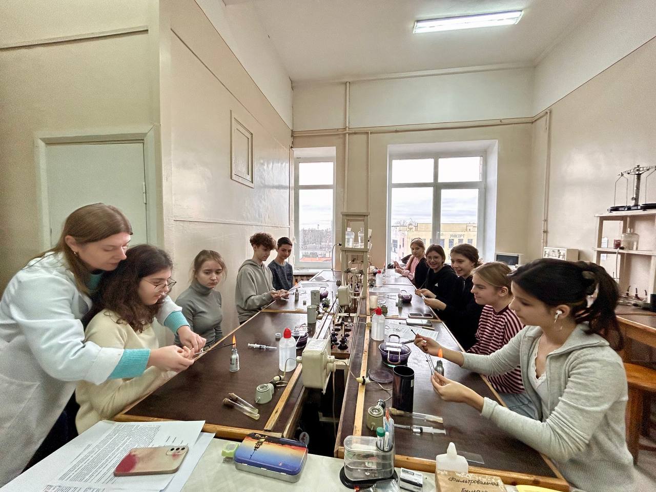 Учні та учениці 8-А і 8-В класів провели змістовний навчальний день у стінах Харківського національного університету імені В.Н.Каразіна. На біологічному факультеті ліцеїстів гостинно зустріла викладач Ірина Миколаївна Раєвська, яка ознайомила ліцеїстів із роботою факультету та специфікою біологічних досліджень. Під час візиту діти прослухали захопливу лекцію з мікробіології, дізналися про роль мікроорганізмів у природі та сучасні методи їх вивчення. У лабораторії майбутні науковці також мали можливість самостійно проводити досліди, працювати з мікроскопом та препаратами, які приготували для них співробітники університету. День проминув у атмосфері щирої цікавості та дослідницького азарту, залишивши учням яскраві враження й натхнення до подальшого вивчення біології.